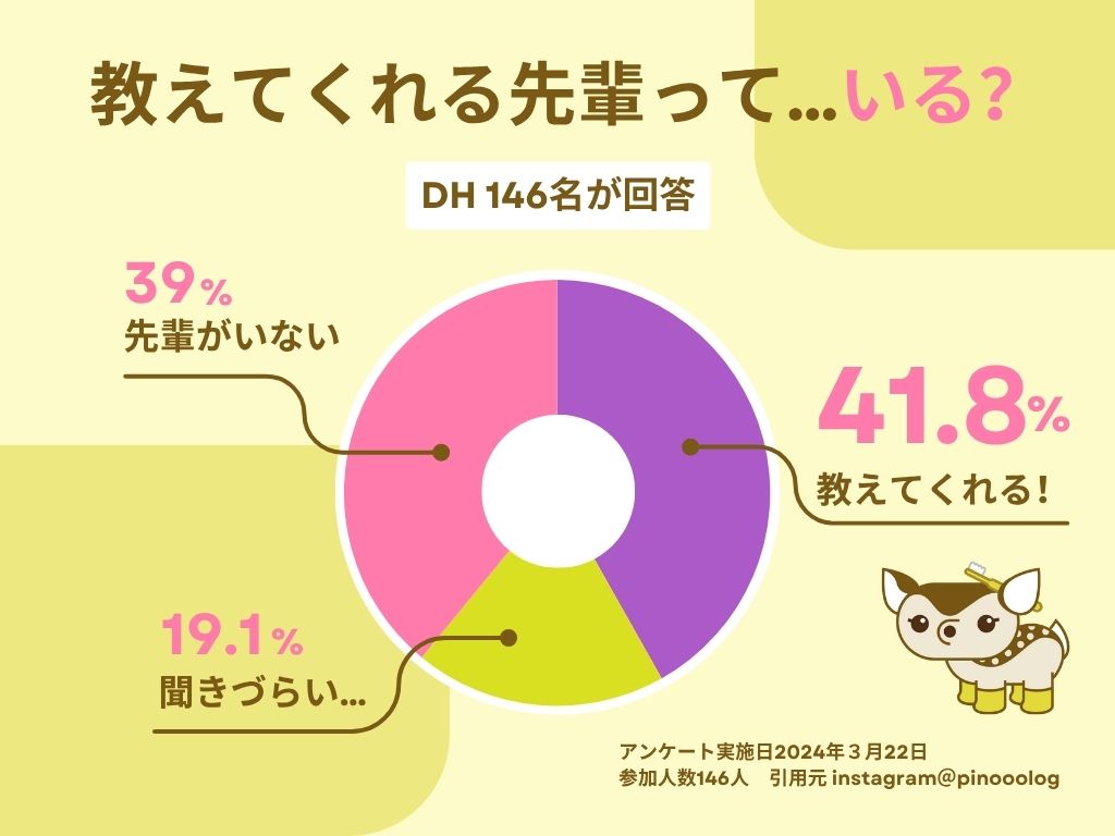 約4割の歯科衛生士さんが「うちの先輩はちゃんと教えてくれる!」と感じているのは、本当に素敵なこと。
