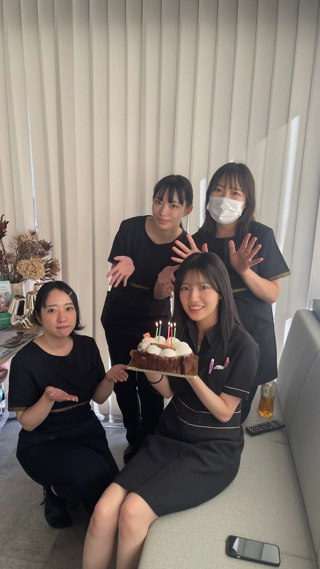 現在、歯科衛生士は常勤3名 パート1名 産休中1名 の計5人在籍しております。常勤の3名は20代前半で、平均年齢は28歳前後となります。
